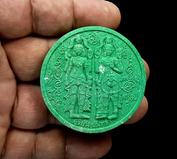 Thaw mahaphrom – phra narai back baeb mongkhol jakkawan gen nakhonsrithammarat city pillar shrine B.E.2549 green powder size 5 cm