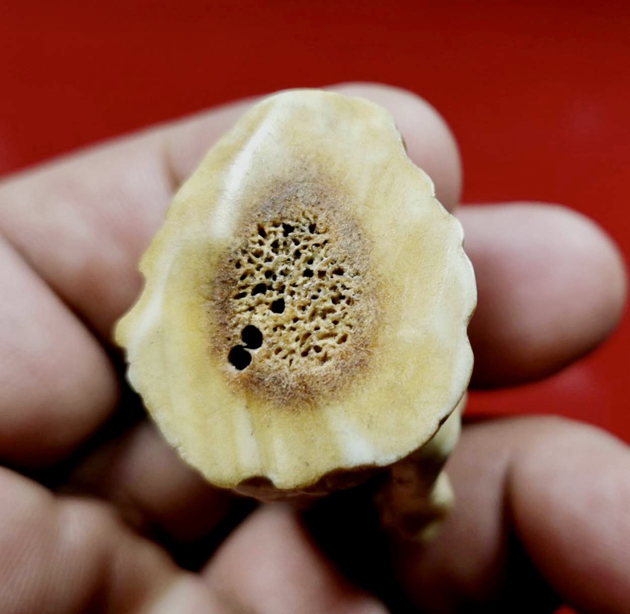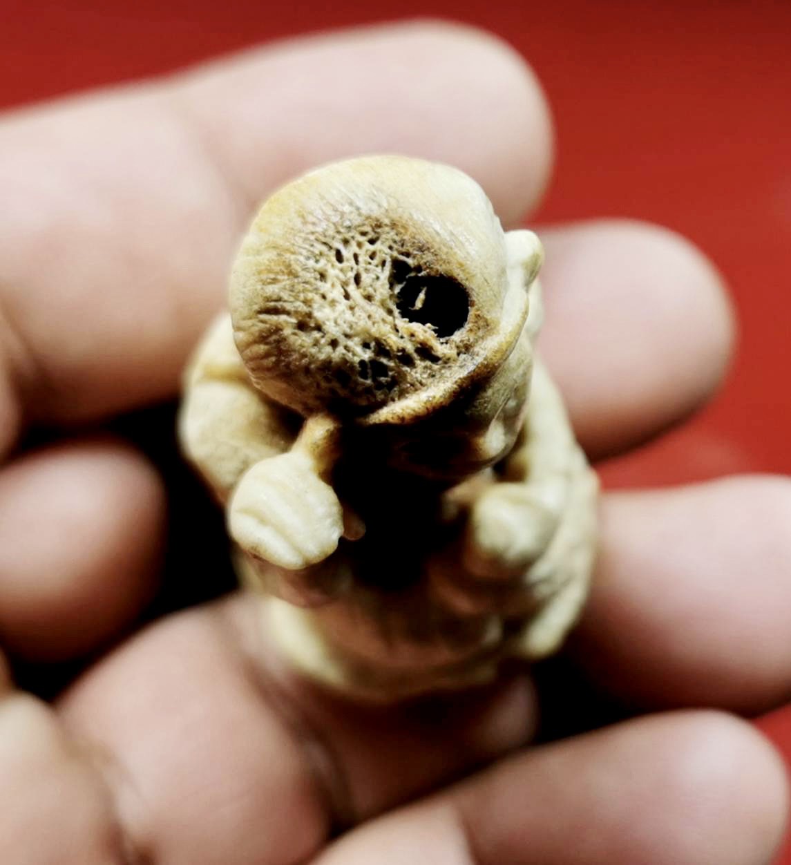 Nangkwak carved from deer horn old about 40-50 years size 1 inch height 2 inch , bottom have handwrite