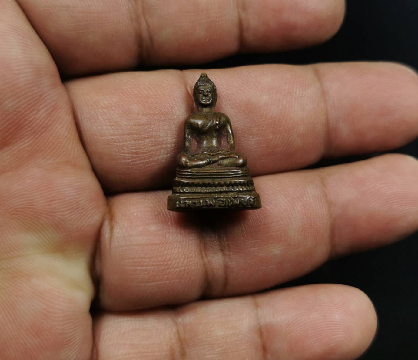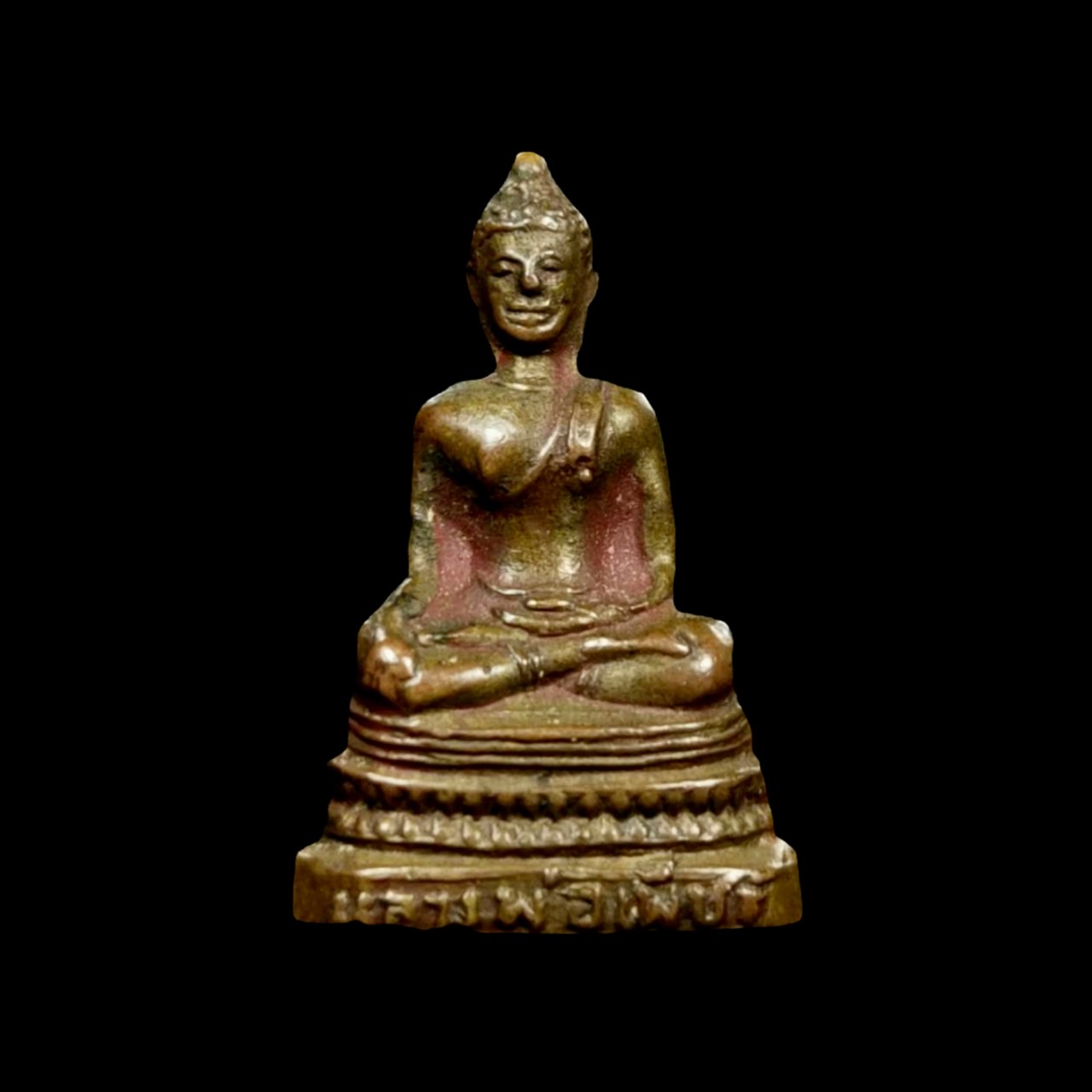 lp phet is buddha marnwichai pose since chiangsaen age at wat thathanon mueang district uttaradit . wat thathanon old name is wat wangtaomor is old temple make since ayutthaya age . history tell that 2436 lp duang headmaster wat nhongmai travel pass this ruined temple , find big anthill sharp shape not like normal anthill . so use stick poke in to top and its out . see buddha head show up . lp duang order student to get anthill out and see big buddha inside . and lp duang see wat nhongmai not have church to put buddha and have people that know news come to pray buddha a lot and also have thief problem . so think that if put at wat wangtaomor (wat thathanon in now) this temple have and in village . easy for villager to come . then he go put at wat wangtaomor and this buddha is khadsamathiphet pose . people called lp phet . in 2443 King rama V make wat benjamapit , collect old buddha from each city to put this temple . lp phet buddha that is beautiful also summon put at this temple too like other . get lp phet out of wat wangtaomor make headmaster very sad then go in forest and finally pass away in mountain . in 2453 King rama V . tell to put lp phet back to wat wangtaomor by request of uttaradit people . in 2473 phra kru thammakitjapibarn with uttaradit people help make new church and summon lp phet put inside for people to pray . lp phet buddha is buddha chiangsaen 1st gen called buddha chiangsaen singhanueng . make from bronze marnwichai pose chaisangkhatisan in khadsamathiphet pose . base 32 inch height 41 inch . beautiful , uttaradit people mean it main city monk . who pray and wish with lp phet mostly successful . this one is phra kring lp phet make in 2500 with G-pra card that is high standard . its good amulet with good price to use