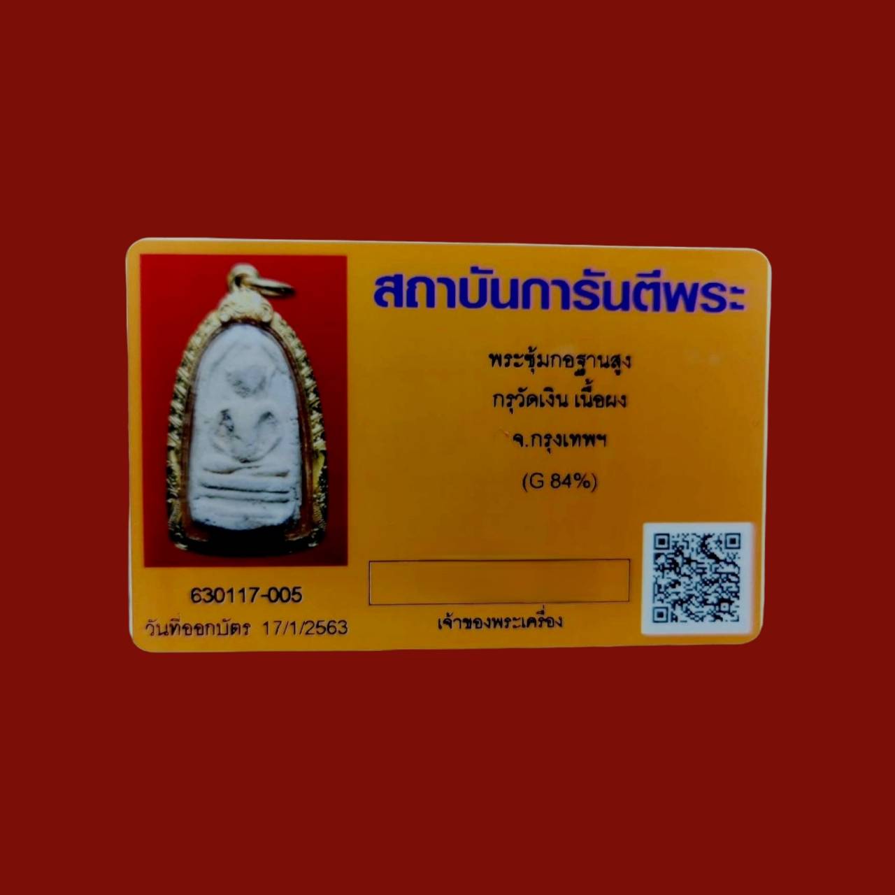 Phra soomkor thansoong kru wat ngern klongtoei bangkok with high percentage gold case and G-pra card