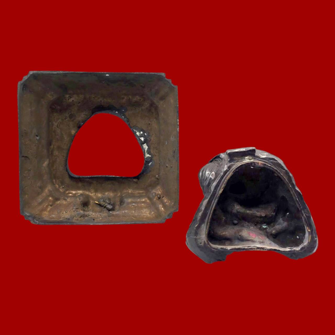 Phra bucha lp thuad wat huaymongkhol sorkor 1st gen B.E.2544 made from metal that cut from head of lp thuad big buddha . This gen only phra bucha have made total 4 size that are base size 16 inch bronze , base size 9 inch nawaloha , base size 9 inch bronze and base size 5 inch bronze . This pcs is base size 5 inch . Can separate to 2 pcs . No.467 , Phra bucha lp thuad wat huaymongkhol is one of phra bucha which good for bucha at home , office or shop . Because have sacredful blessed event . It’ll bring prosperity and protection from any disaster .