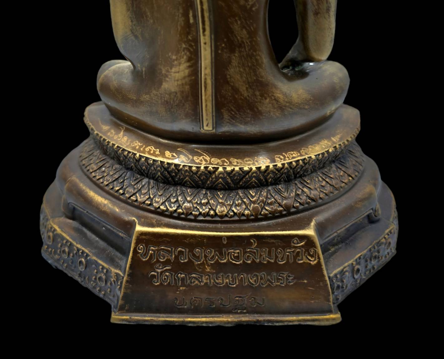 This pcs is Phra bucha model lp somwang base size 5 inch . bronze made as 2nd gen of temple . Under base have amulet of lp phut many things like phra pim somdej , phra pim nangphaya , consecrated rattan , yellow robe , takrud . Have lp somwang bucha in home , shop , office , if wishing with lp will success like his name lp somwang