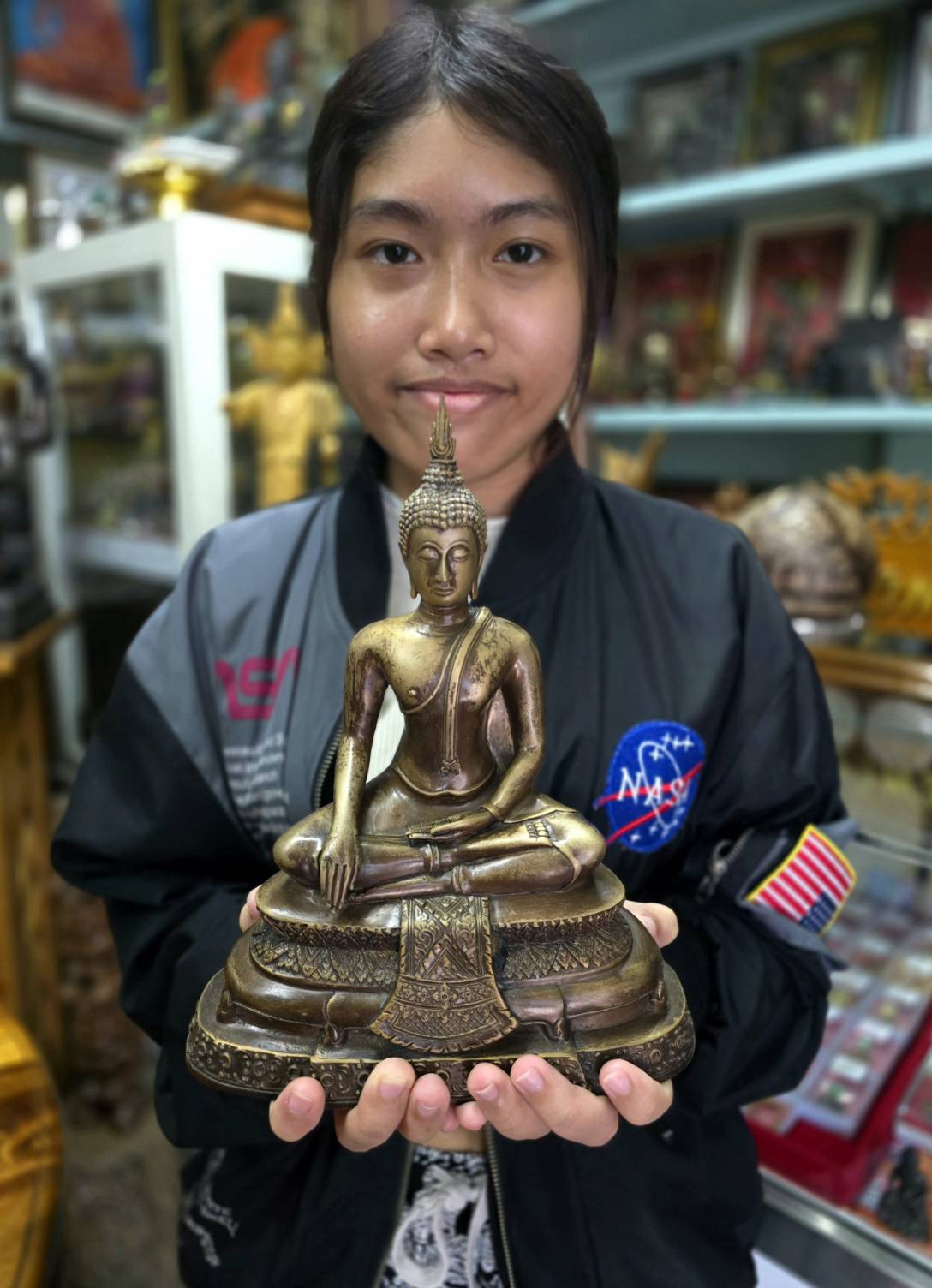 พุทธะมัชฌิมาราเม สมิชฌิตาสะพุทธะปฏิมัง ปูเชมิหัง ยาวชีวัญจะ สุกัมมิโก สุขะปัตถิตายะ