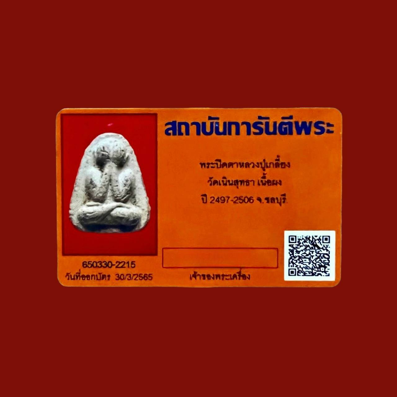 Phra pidta 1st gen lp kliang wat nernsuthawas chonburi B.E.2497 powder with G-pra card