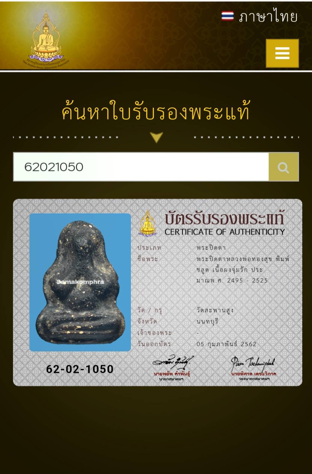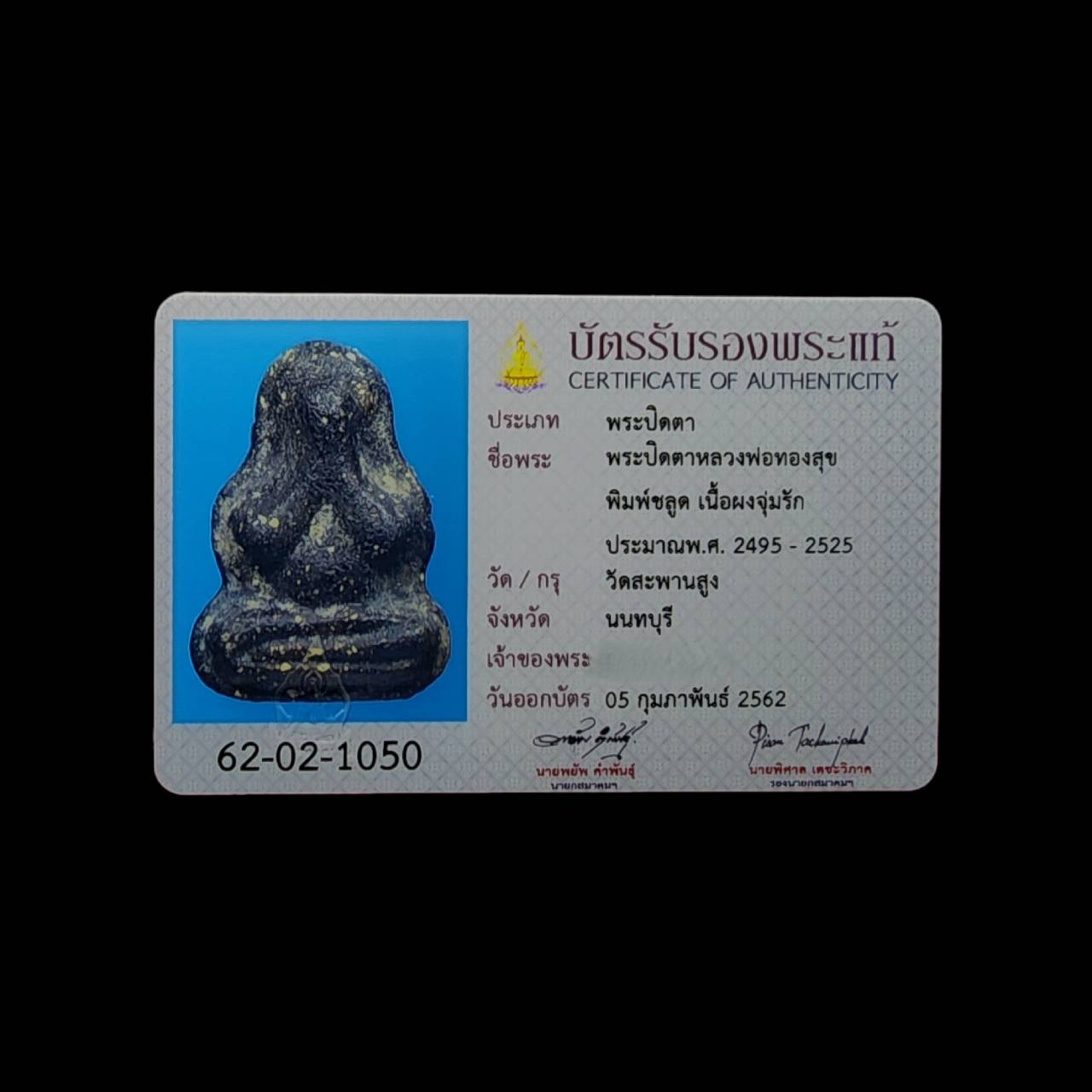 Phra pidta lp thongsuk wat saparnsoong nonthaburi B.E.2495 pim chalood powder joomrak with acrylic case silver top and bottom with samakhom card