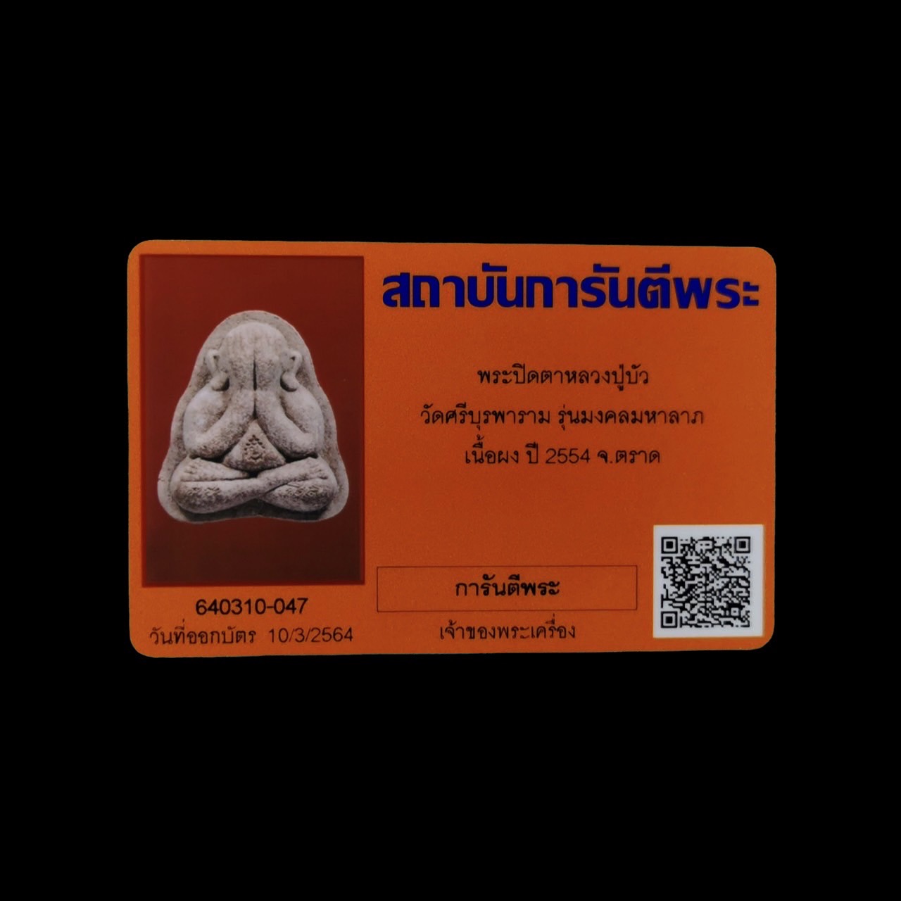 Phra pidta mongkholmahalarp gen lp bua wat sriburaparam B.E.2554 powder with G-pra card