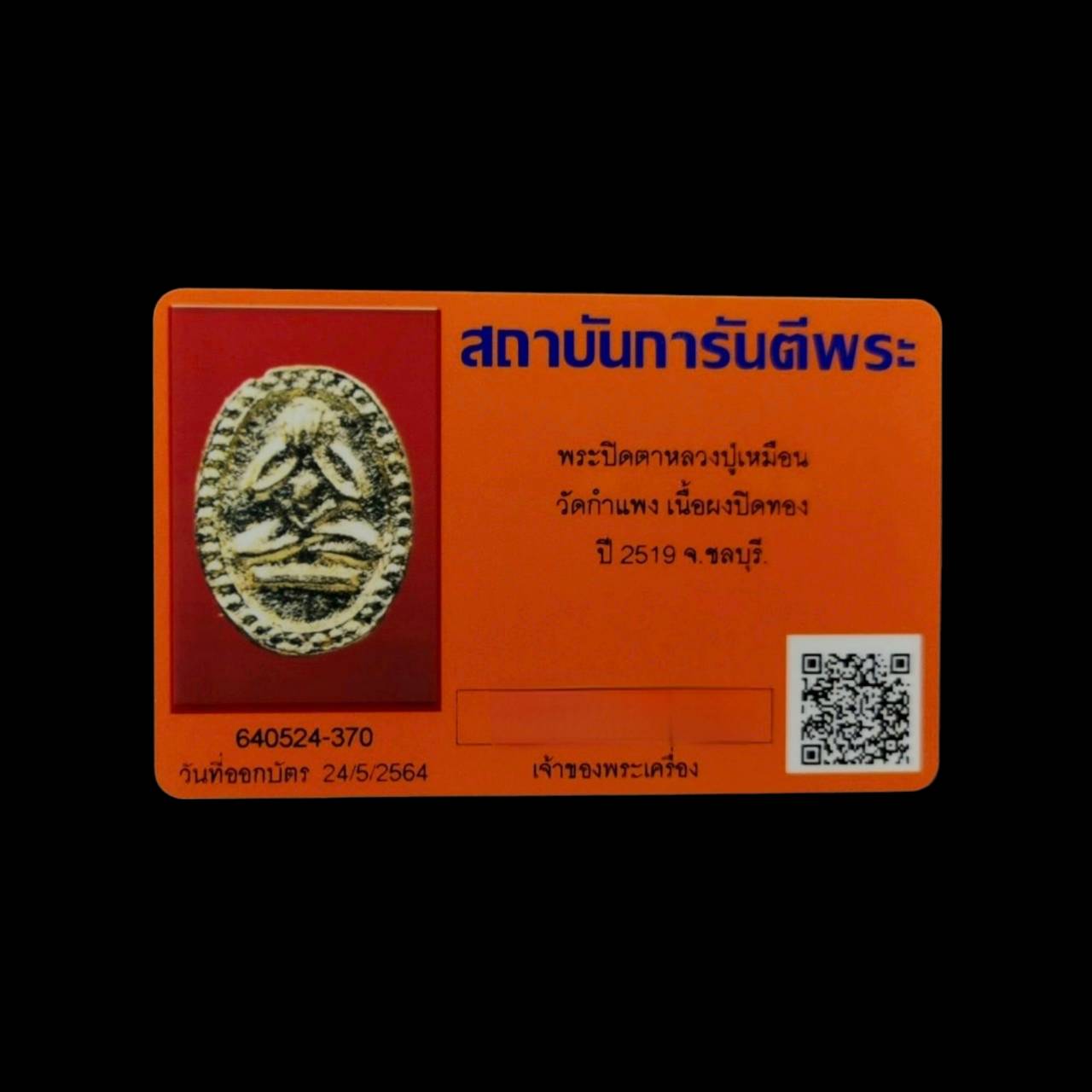 Phra pidta lp mhuean wat kampaeng cholburi B.E.2519 powder with gold with G-pra card