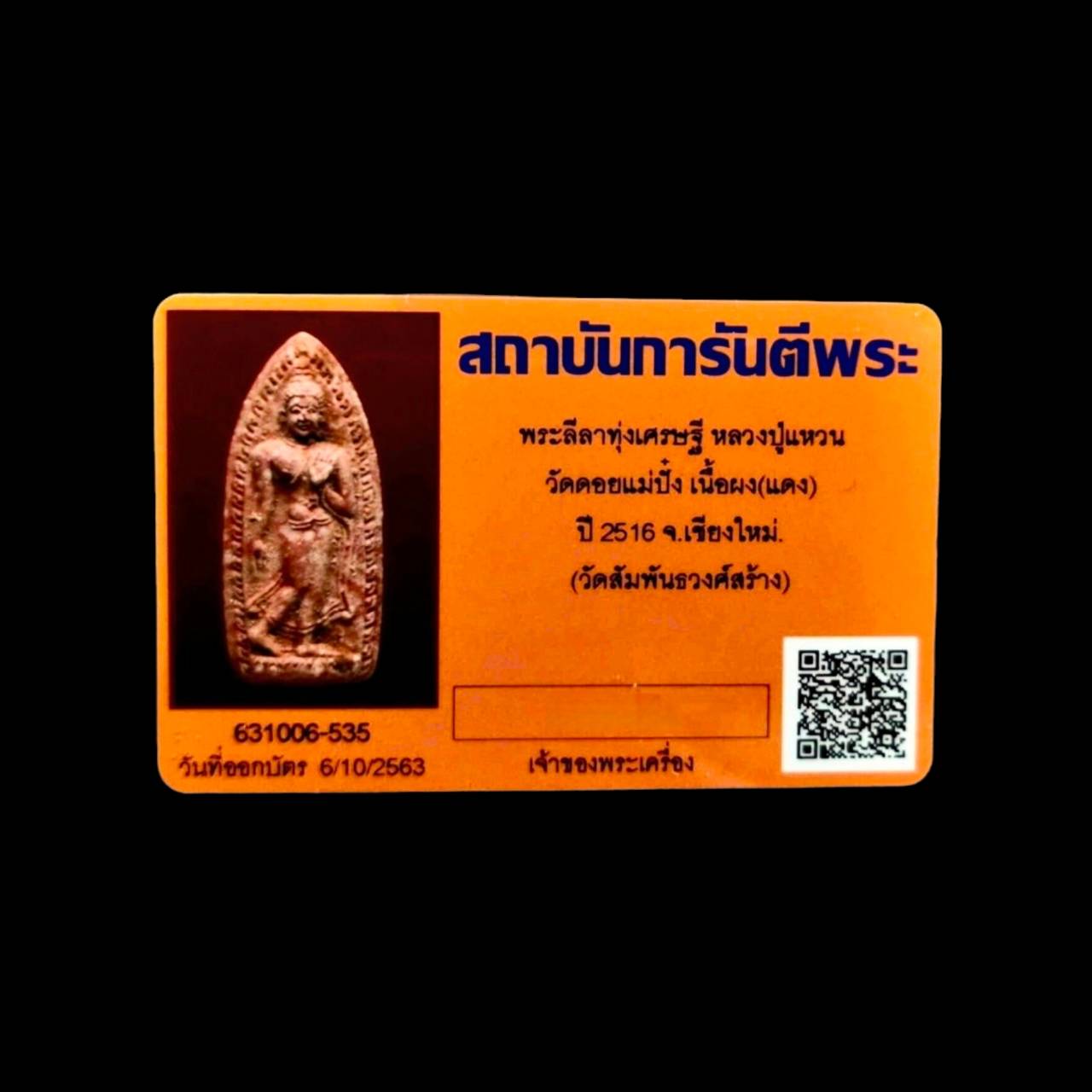 Phra leela thoongsetthee lp waen wat doimaepang chaingmai B.E.2516 red powder with G-pra card