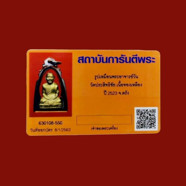 Sculpture 2nd gen ac wan manaso wat prasitthichai trang B.E.2523 brass with G-pra card