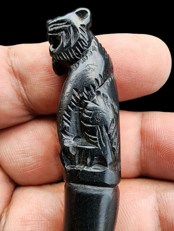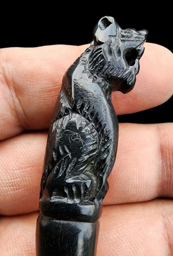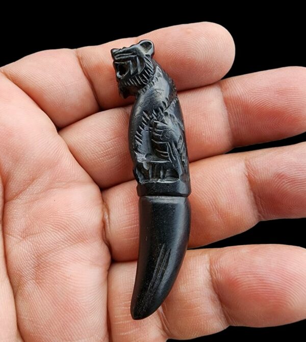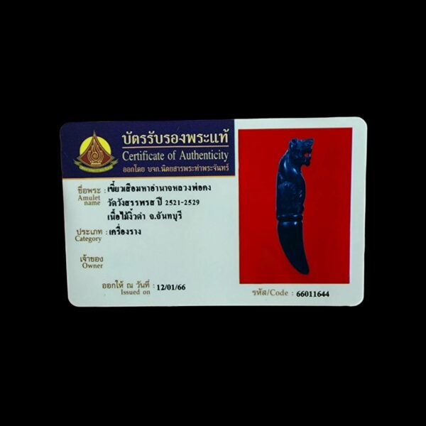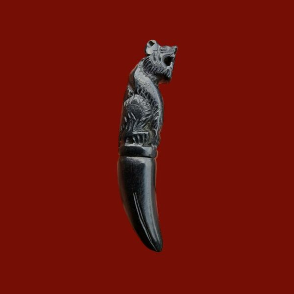 Tiger fang mahaamnaj lp kong wat wangsapparos chanthaburi carved from phraya ngewdam wood Made around B.E.2521 With Thaphrachan card