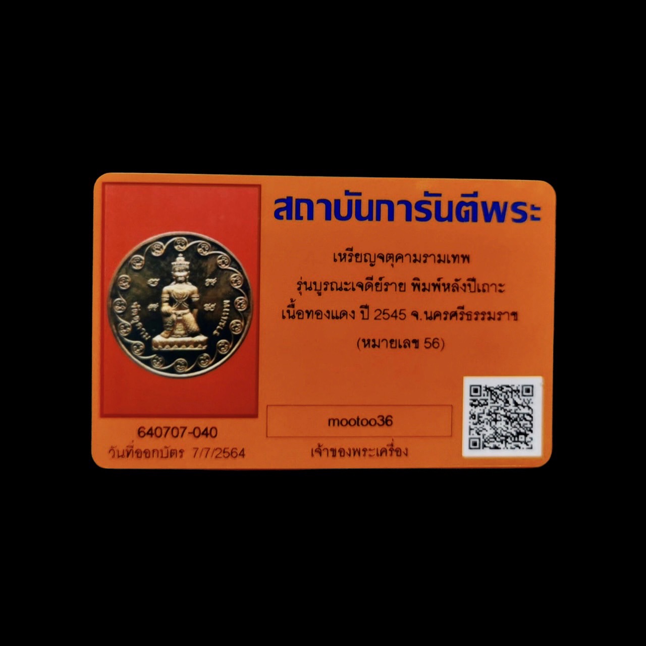 Rian jatukarm ramadeva jedirai restoration gen pim back rabbit year B.E.2545 copper No.56 with G-pra card and with gold case longya high percentage