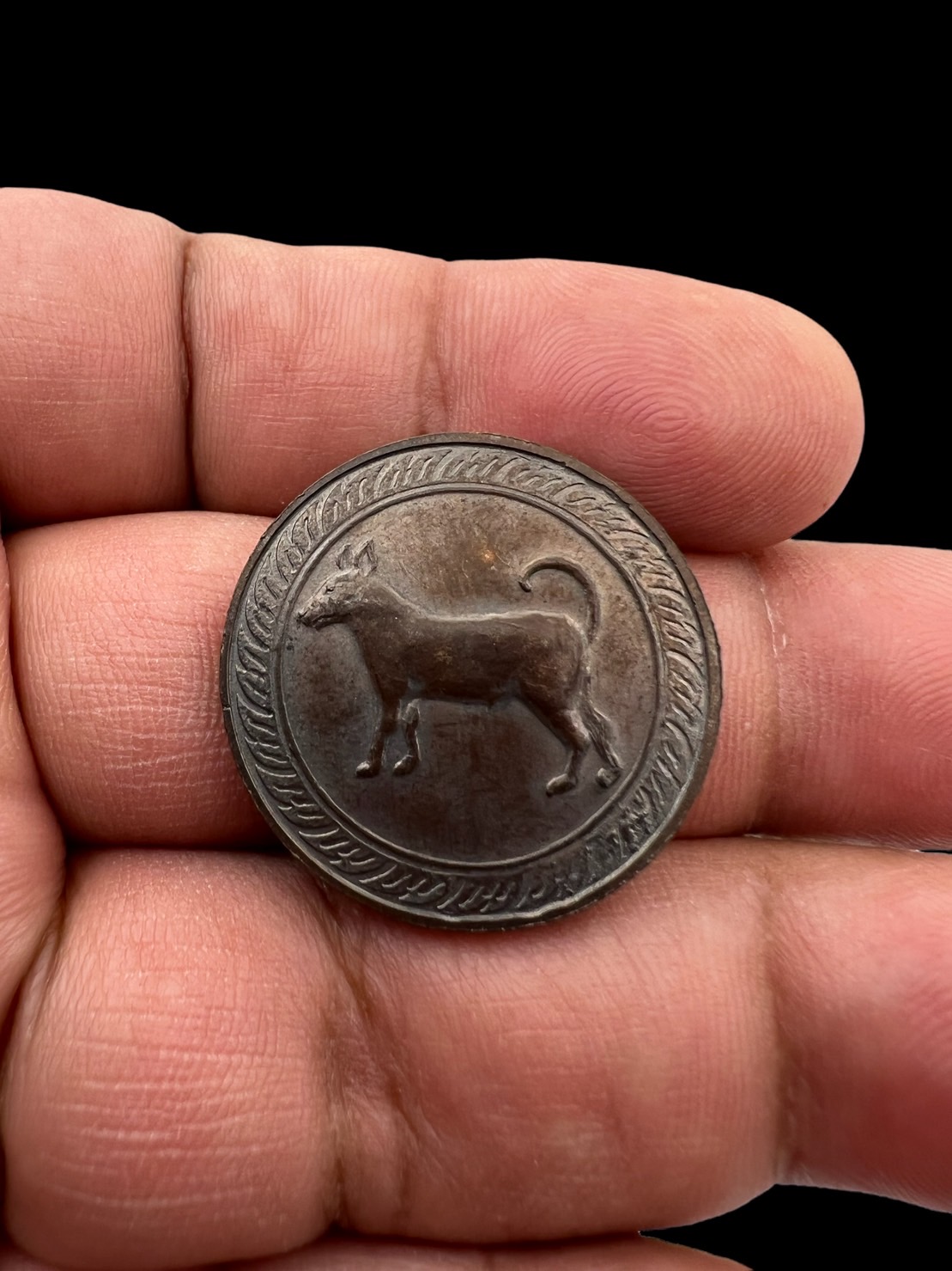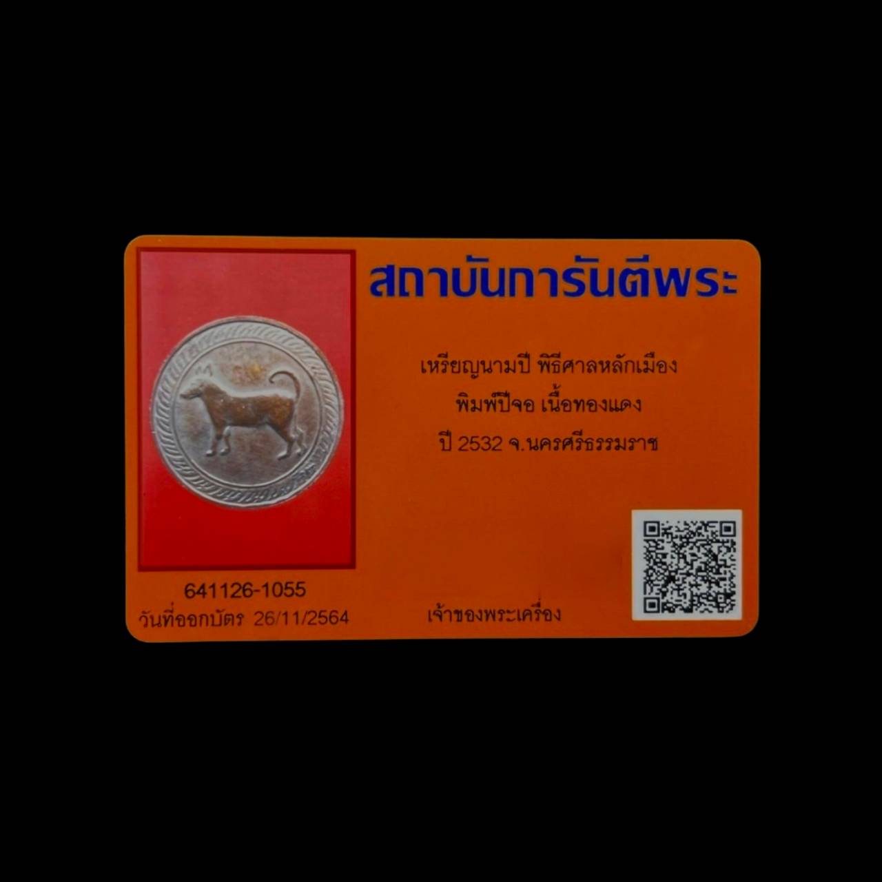 Rian nampee 1st gen nakhonsritthammarat city pillar shrine B.E.2532 copper pim dog year with G-pra card