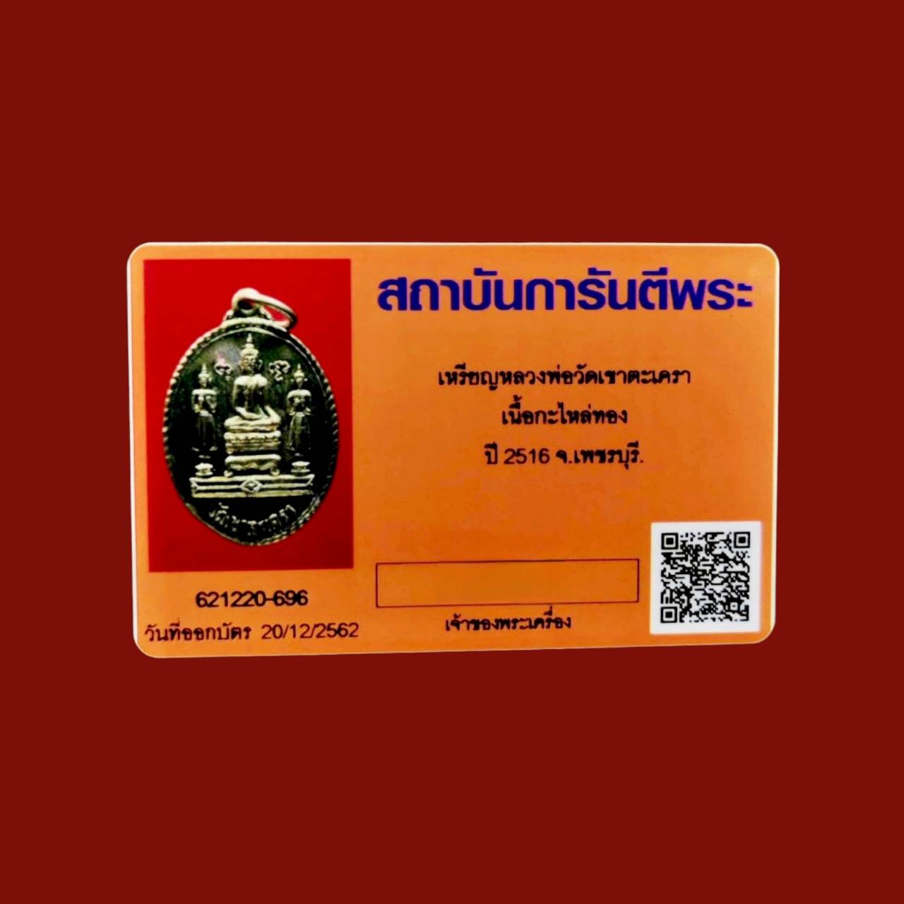 หลวงพ่อวัดเขาตะเคราเป็นหนึ่งในพระรูปศักดิ์สิทธิ์ที่ลอยน้ำมาจากทางเหนือของประเทศไทยซึ่งลอยมาพร้อมด้วยกันทั้งหมด5องค์ได้แก่ หลวงพ่อโสธร หลวงพ่อวัดบ้านแหลม หลวงพ่อโตวัดบางพลีใหญ่ หลวงพ่อวัดไร่ขิงและหลวงพ่อวัดเขาตะเครา รวมเรียกกันว่าพระ5พี่น้อง ซึ่งในปัจจุบันแต่ละองค์ล้วนแต่เป็นพระพุทธรูปศักดิ์สิทธิ์อันดับต้นๆของประเทศไทยทั้งสิ้น ส่วนหลวงพ่อวัดเขาตะเครานั้นได้ลอยน้ำมาจนถึงบริเวณวัดเขาตะเครา จังหวัดเพชรบุรี ชาวบ้านจึงทำการอัญเชิญขึ้นมาประดิษฐานที่วัดเขาตะเครา ชาวบ้านทั้งในจังหวัดเพชรบุรีและจังหวัดใกล้เคียงต่างมากราบไหว้สักการะขอพรกับหลวงพ่อวัดเขาตะเคราต่างก็สำเร็จสมหวังดังตั้งใจกันแทบทุกเรื่อง ทำให้ชื่อเสียงของหลวงพ่อวัดเขาตะเคราโด่งดังไปทั่วประเทศ องค์ที่นำมาลงนี้สร้างในปี2516 เป็นพิธีปลุกเสกหมู่โดยพระเกจิอาจารย์ที่มีชื่อเสียงของจังหวัดเพชรบุรีและจังหวัดใกล้เคียง เหรียญนี้เป็นเหรียญทองแดงกะไหล่ทอง มาพร้อมบัตรรับรองพระแท้จากเว็บจีพระซึ่งถือว่ามีมาตราฐานสูงเชื่อถือได้ เหรียญหลวงพ่อวัดเขาตะเครารุ่นนี้จัดว่าราคายังไม่สูงมากนักแต่มีจัดพิธีปลุกเสกที่ดีมากๆและมีประสบการณ์สูงอีกรุ่นหนึ่ง