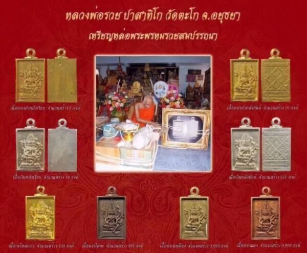 องค์ที่นำมาลงนี้เป็นเหรียญหล่อพระพรหมสี่หน้ารุ่นแรกของหลวงพ่อรวย วัดตะโก พระเกจิอาจารย์ชื่อดังของจังหวัดพระนครศรีอยุธยา วัตถุมงคลของท่านเด่นมากทางโชคลาภโภคทรัพย์ และชื่อของท่านก็เป็นมงคลนามมากๆสื่อถึงความร่ำรวย ยิ่งมาสร้างในรูปแบบของพระพรหมด้วยแล้วยิ่งน่าใช้มากๆเลยทีเดียว