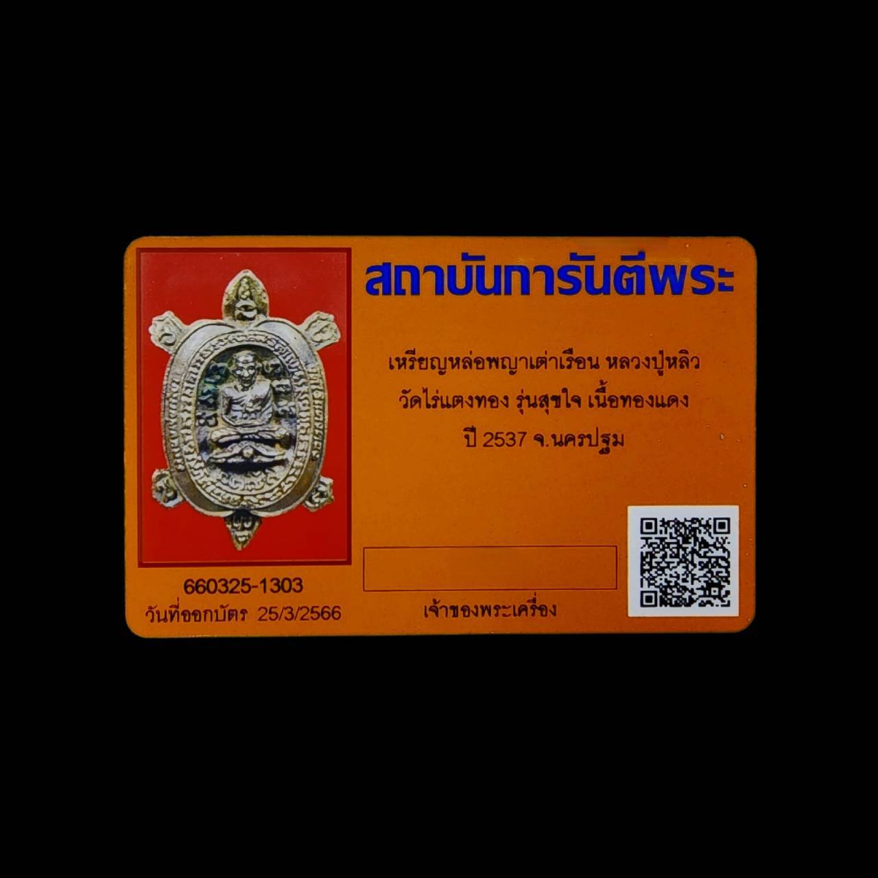 Rian turtle forge sukjai gen lp liew wat raitangthong B.E.2537 copper with G-pra card