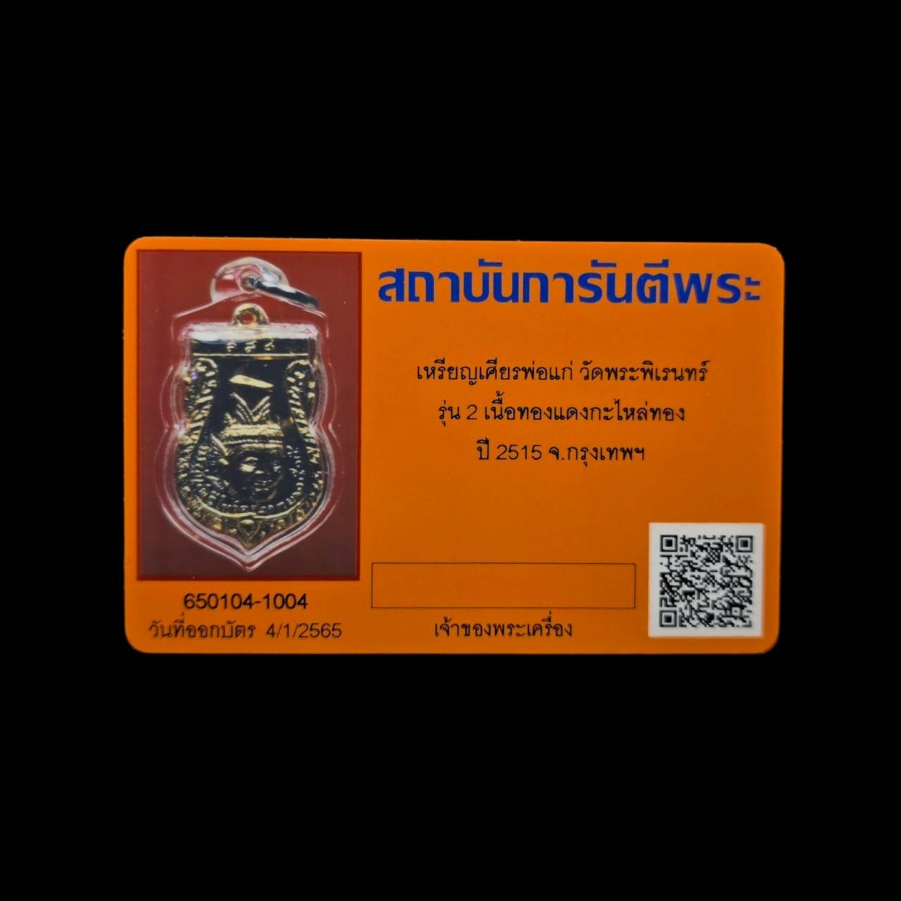 Rian phorkae head wat phraphiren 2nd gen B.E.2515 copper plated gold with G-pra card