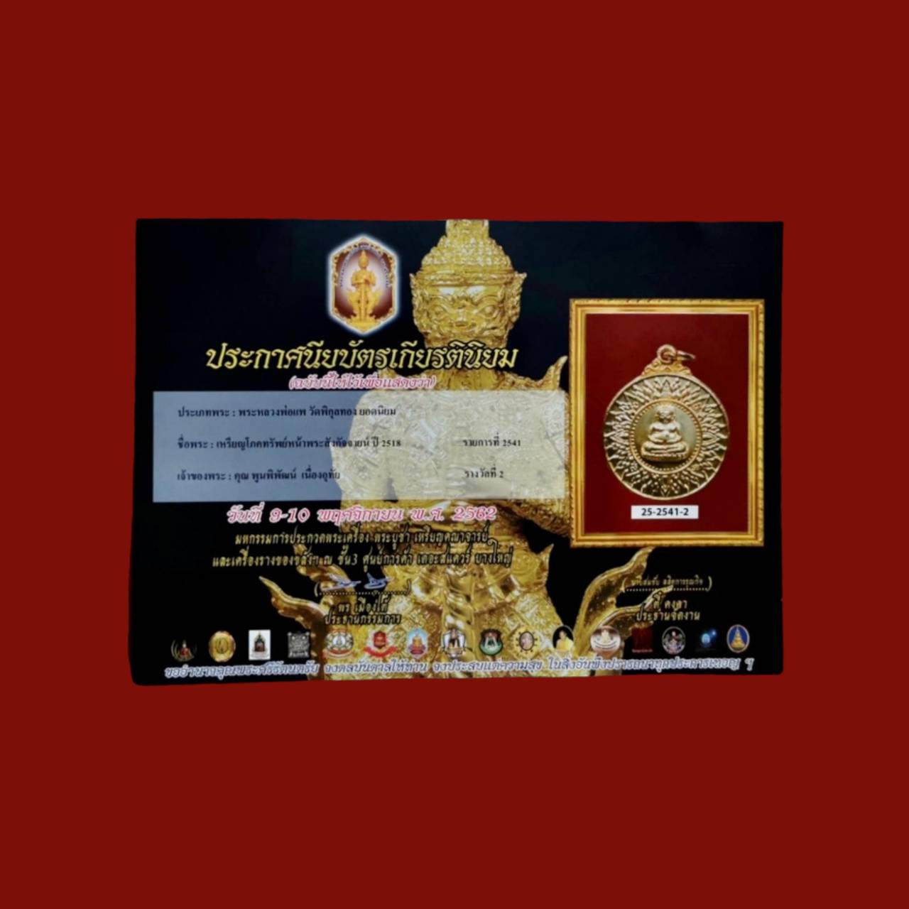 Rian phokasup 1st gen lp phrae wat pikulthong B.E.2518 copper plate gold(made less and rare) get 2nd in comp