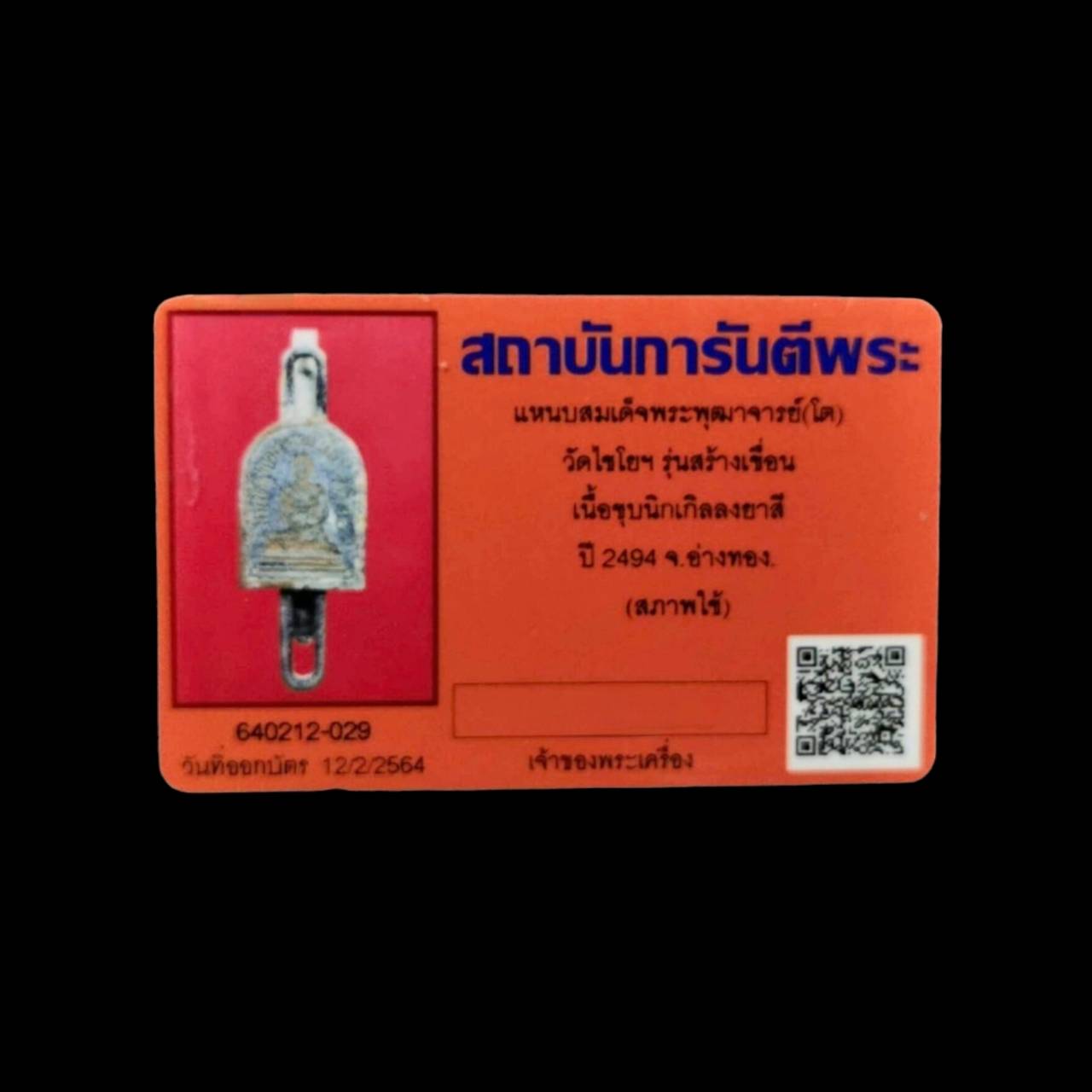 pin somdej phutthajarn toh wat chaiyo angthong sangkhuean gen B.E.2494 metal plated nickel longya with G-pra card