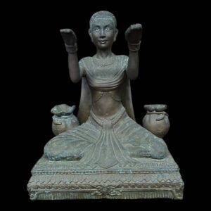 รูปหล่อบูชาพระสังข์ ร่ายมนต์มหาจินดามณี เรียกเนื้อเรียกปลา เก่าไม่ทราบที่ เนื้อทองผสมรมดำ Sculpture bucha phra sang mahajindamanee magic riaknuea riakpla old unknown maker bronze with black