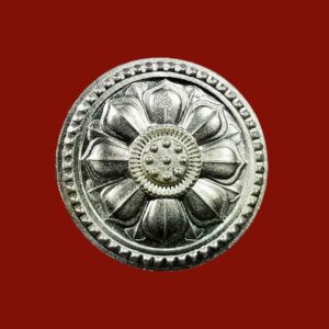 เหรียญบัวบาน หลังธรรมจักร พิมพ์ใหญ่ (4cm) เนื้อทองแดงกะไหล่เงิน พระอาจารย์คลังแสง สำนักสงฆ์เขากุฏิ เกาะยอสงขลา ปี2556 Rian buaban back thammajak pimyai (4cm) copper plated silver ac klangsaeng khaokuti community khao yor songkhla B.E.2556