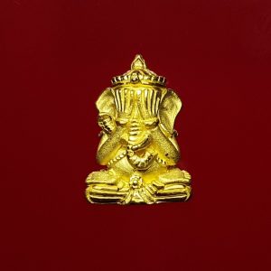 พระพิฆเนศ ปางประทานพร เศียรครู ปั้นมือ เนื้อดินอาถรรพ์ ปิดทอง ขนาดบูชา หน้าตัก 6 นิ้ว อายุ มากกว่า 100 ปี Phra phikanet pratarnporn pose siankru handmade cursed baked clay with gold bucha size base 6 inch old more than 100 years
