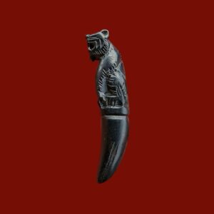 เขี้ยวเสือมหาอำนาจ หลวงพ่อคง วัดวังสรรพรส จันทบุรี แกะจากไม้พญางิ้วดำ สร้างประมาณปี 2521 พร้อมบัตรรับรองพระแท้จากนิตยสารพระท่าพระจันทร์ Tiger fang mahaamnaj lp kong wat wangsapparos chanthaburi carved from phraya ngewdam wood Made around B.E.2521 With Thaphrachan card