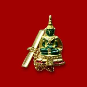 เข็มกลัดพระสยามเทวาธิราช วัดป่ามะไฟ ปราจีนบุรี ปี2525 เนื้อทองแดงกะไหล่ทองลงยา (สีฟ้าประจำวันศุกร์) Pin phrasayamtewathirat wat pamafai prajeenburi B.E.2525 (copper plated with gold longya)